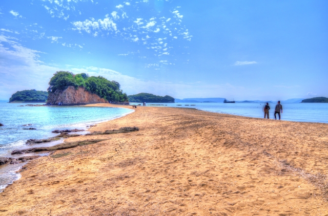 A sandbar that appears only at low tide, Angel Road is located on Shodoshima and is said to bring couples luck if they walk it together while holding hands. It’s a romantic spot that attracts many visitors.