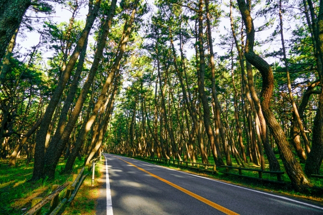 Niji no Matsubara is a scenic pine forest stretching along the coastline near Karatsu. Originally planted to protect the area from harsh winds and tides, this forest now serves as a popular spot for leisure activities, including walking and picnicking under the shade of its black pine trees, which line the five-kilometer sandy beach.