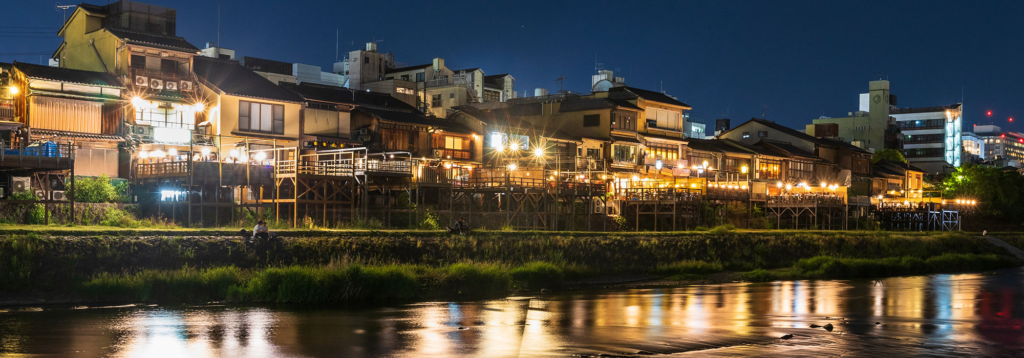 Experience Kyoto’s summer tradition at Kamogawa Noryo Yuka, where restaurants along the Kamo River set up outdoor terraces for dining under the stars. This seasonal phenomenon transforms the riverbanks into a lively culinary scene, offering cool breezes and exquisite meals. A favorite summer pastime among locals, it provides a unique way to enjoy Kyoto’s gastronomy and natural beauty. Whether savoring traditional Kyoto cuisine or enjoying a drink with friends, the Noryo Yuka offers an unforgettable evening of relaxation and indulgence in the heart of the city.